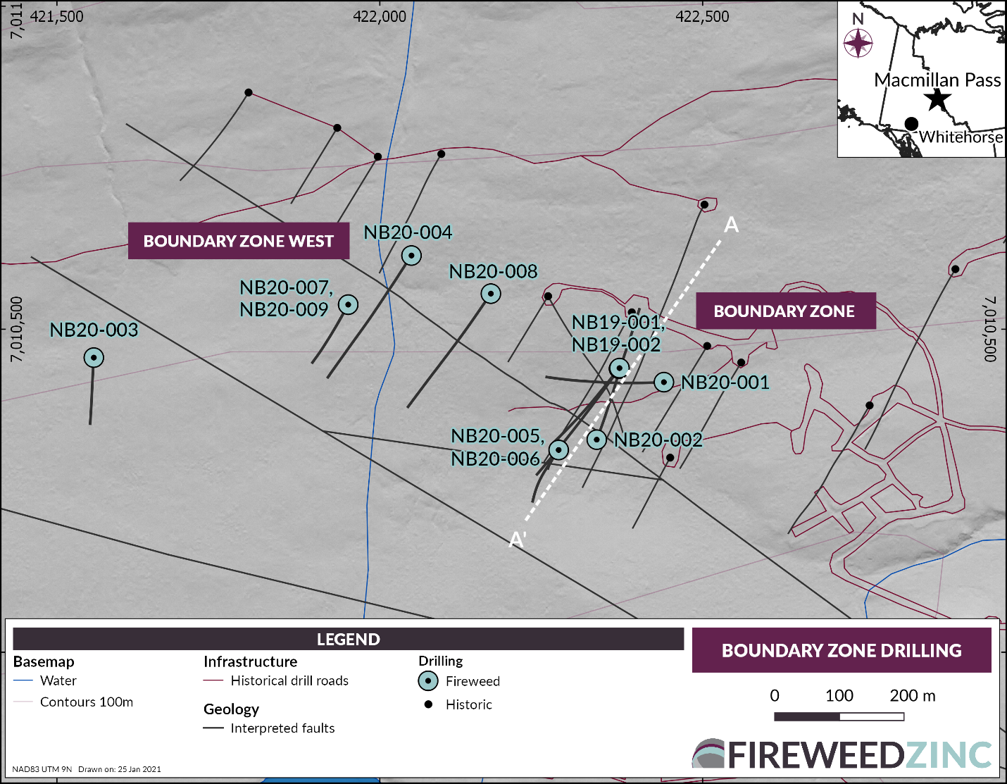 VANCOUVER, British Columbia, Jan. 26, 2021 (GLOBE NEWSWIRE) — FIREWEED ZINC LTD. (“Fireweed”) (TSXV: FWZ) is pleased to announce the first results from the 2020 drilling at the Macmillan Pass Project in Yukon, Canada. These results are from Boundary Zone, located 15 road kilometres west of the Tom-Jason deposits (see Map 1).